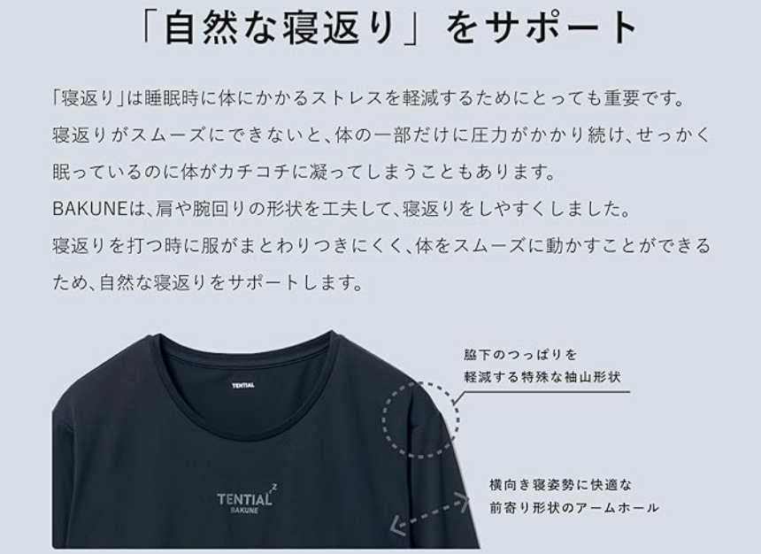 夜中に目が覚めていた原因の1つがパジャマの着心地の悪さだったんだと、BAKUNE購入後に気付きました。
