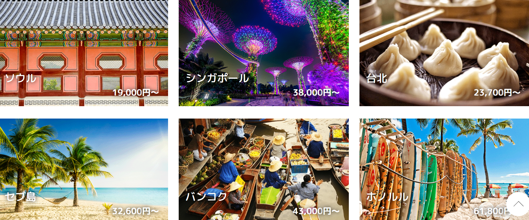 韓国4万円台~ 台湾5万円台~ 香港5万円台~ シンガポール9万円台~ タイ5万円台~ セブ島6万円台~ ベトナム6万円台~ イタリア18万円台~ フランス18万円台~ イギリス18万円台~- オーストラリア15万円台~