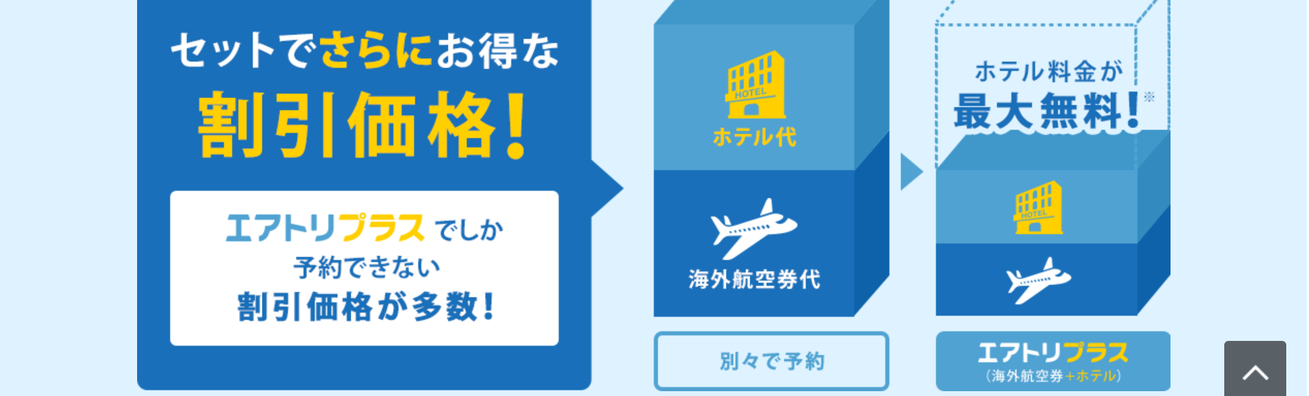 【エアトリ | ・早めの予約で割引 ・航空券+ホテル予約で更にトク |