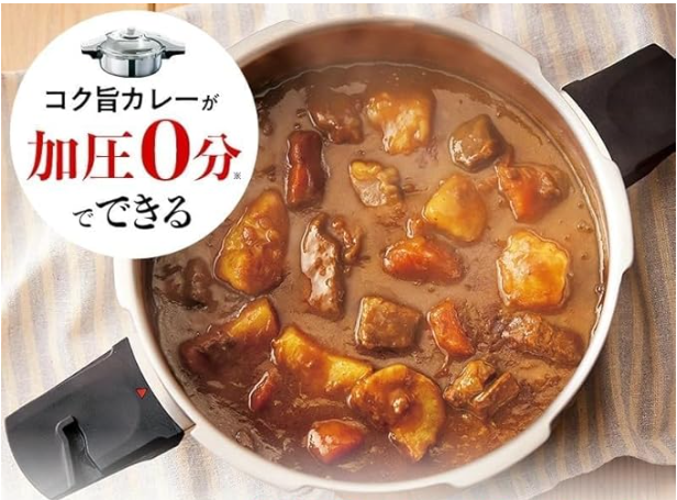 - 加圧後すぐに火を止めて余熱で調理を進める「0分料理」が可能
