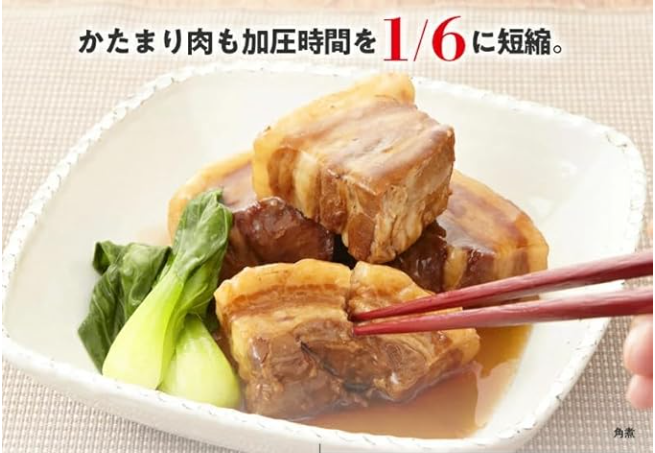 高圧で短時間調理、簡単なのに肉がホロホロに。手抜き料理でも仕上がりが良く、忙しい日の夕飯に本当に助かります