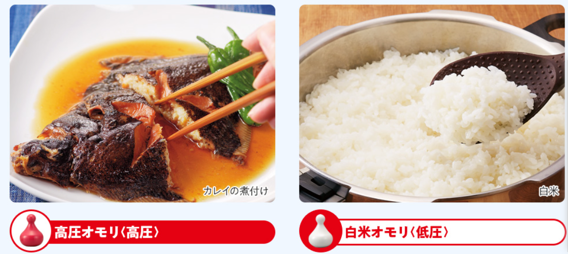2種類のオモリの使い分けや圧力調整で、レパートリーを広げたい人に使いやすく料理の幅が広がります◎