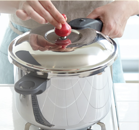 - 火からおろしたら内圧表示のピンが下がるまで置いておく